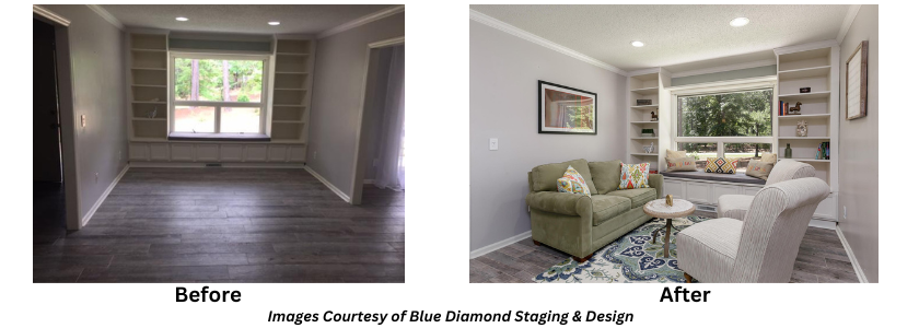 Well, that was me a while back. Now, I’m here with Kasia McDaniel, professional home stager with Blue Diamond Staging & Design, to share some of her top tips for staging a house for sale, and a few quips from my own staging success story.
