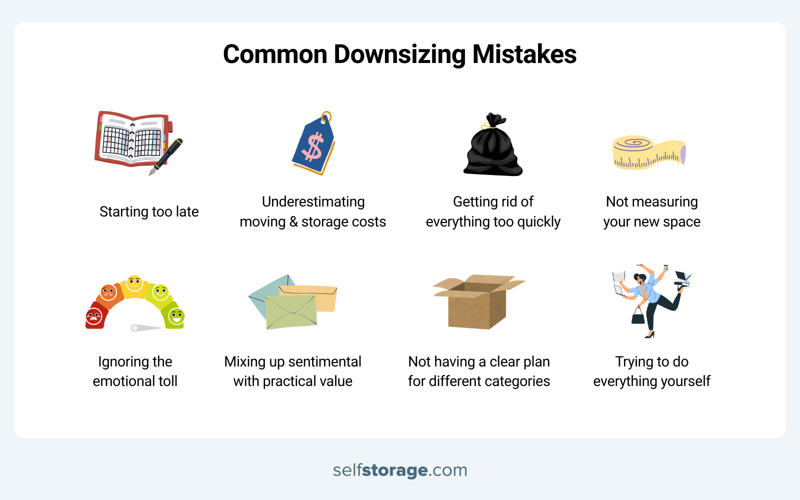 Many people make predictable mistakes during downsizing that can be avoided with awareness and planning. Rushing decisions due to external pressure (moving deadlines, family expectations, or financial constraints) can often lead to regrets about valuable items that were discarded hastily.